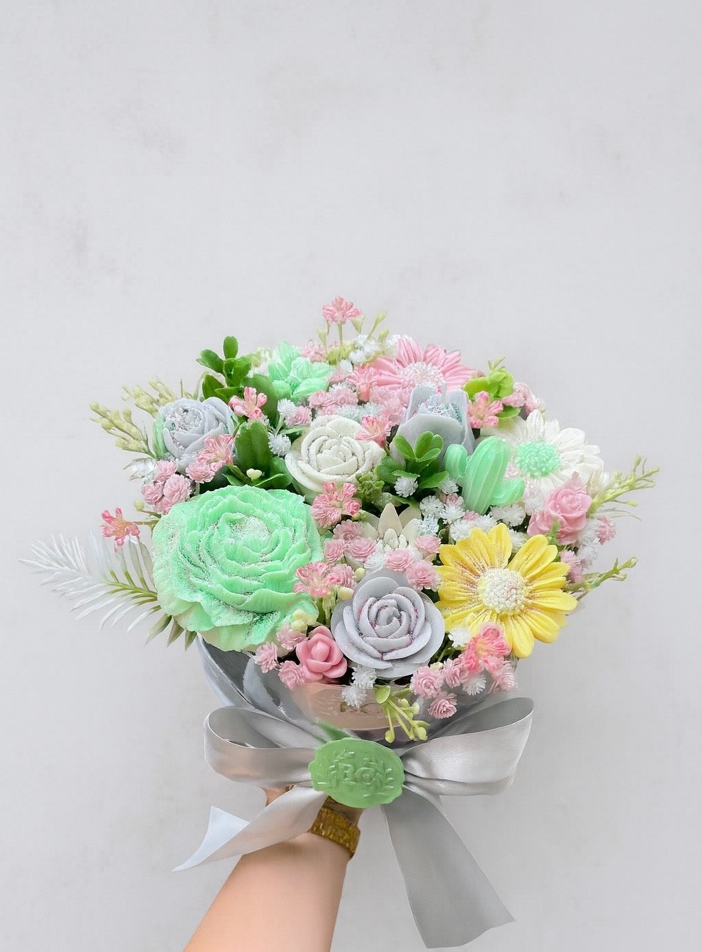 Uma caixa de flores em cera elegante e que perdura no tempo. Perfeitos para decorar, oferecer ou tornar cada ocasião extra especial.